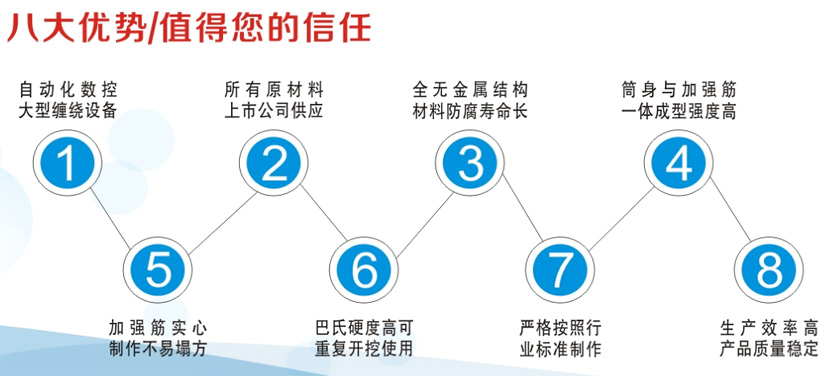 說明:采用三套自動化大型數(shù)控纏繞設(shè)備,完全能滿足《玻璃鋼化糞池技術(shù)要求》的行業(yè)標(biāo)準(zhǔn)。